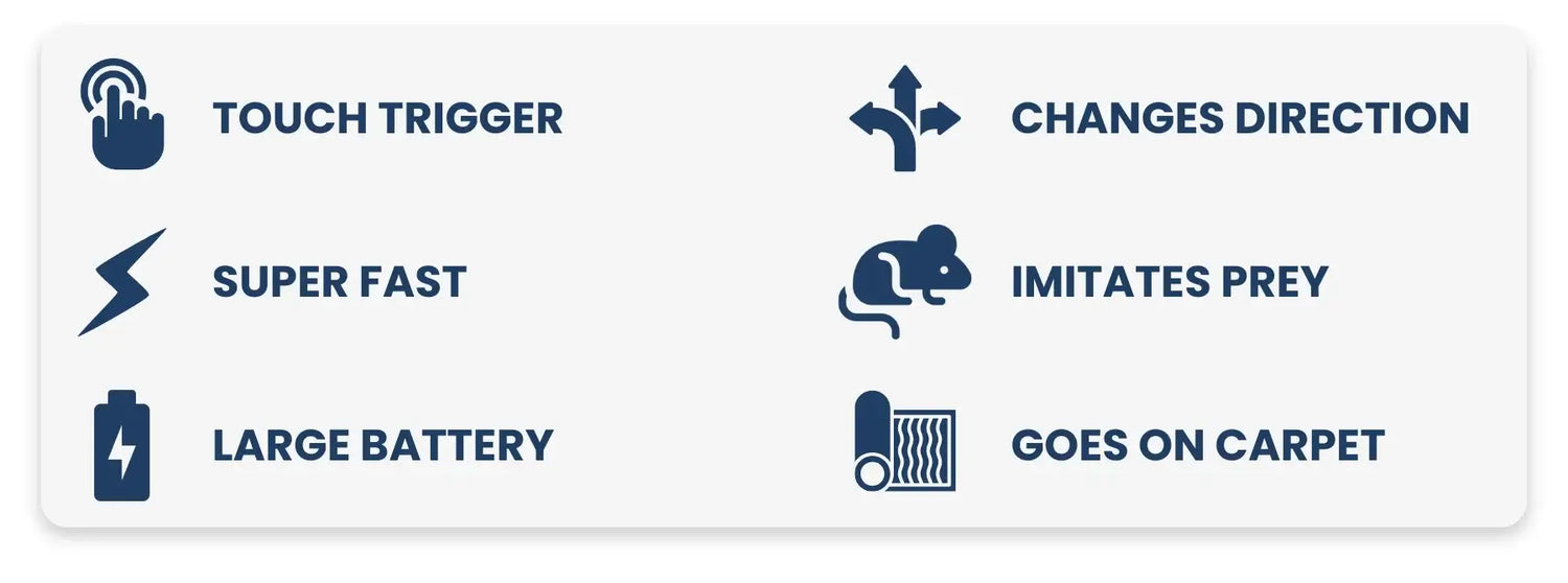 A full charge (under 1 hour) provides up to 200 motion cycles, ensuring hours of entertainment for your cat.